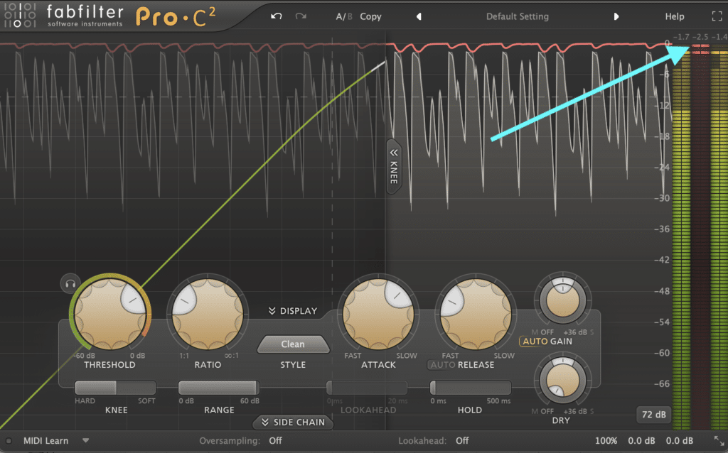 Applying it brings the high-level passages and peak information of signal down, helping smooth transients out and making your mix sound fatter.