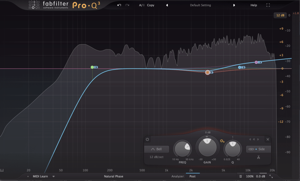 Pro-tip: try to use the least phase-destructive versions of processing, such as the ‘Natural Phase’ option on FabFilter Pro-Q 3. This will keep the coherence of the mix, and your mastering engineer will thank you.